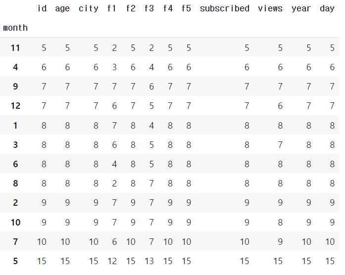 → groupby('month').count()를 통해 월별 개수를 구해준다.