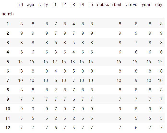 df = df.groupby('month').count()