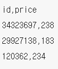 → 문제 예시와 같이 'id' 컬럼에 test_id를 'output' 컬럼에 예측 가격을 넣어 데이터프레임을 만든다.