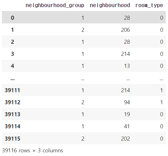 cols =['neighbourhood_group', 'neighbourhood', 'room_type']
