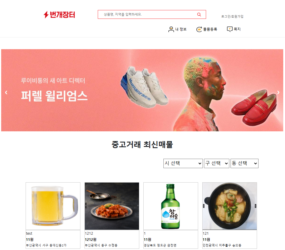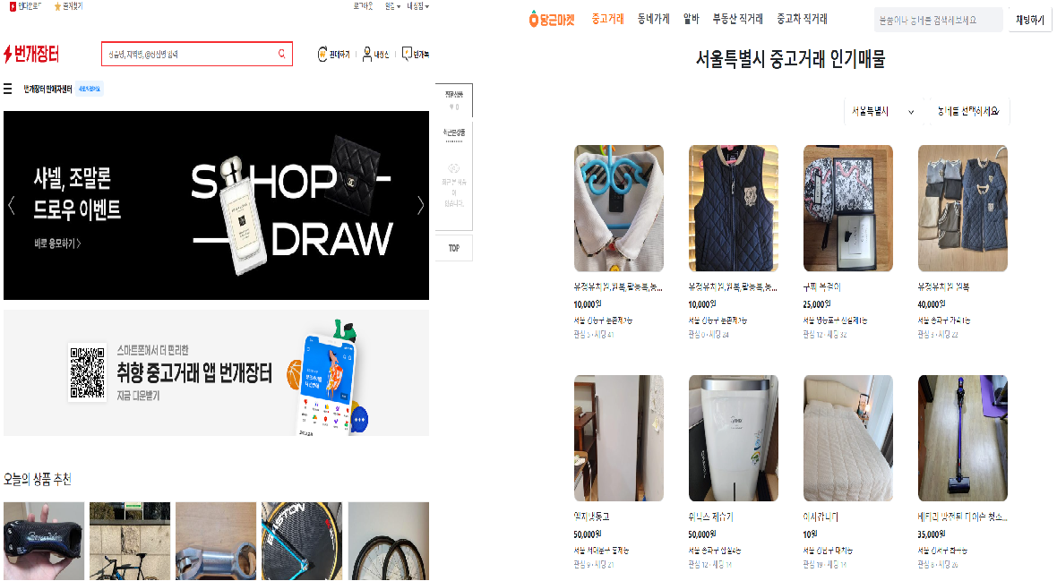 번개장터와 당근마켓의 특징을 섞은 지역명과 상품명을 이용한 중고거래사이트