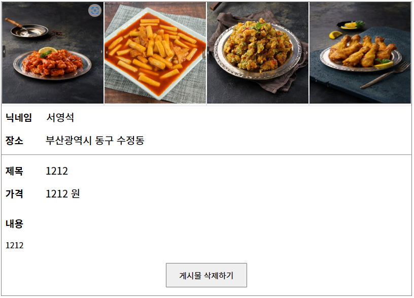 - 게시글 작성자일 경우 게시물 삭제하기 버튼 클릭 시 즉시 삭제 가능