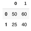 df = pd.DataFrame([[50, 60],[25, 40]])