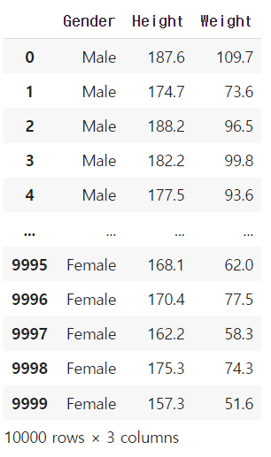 → Weight와 Height를 이용해 bmi를 구한다. (키는 cm로 되어있어 100으로 나눠 m로 만들어 줘야한다.)