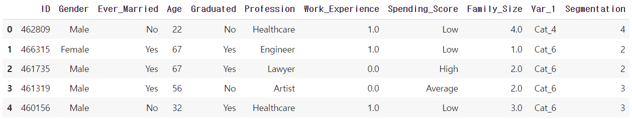 → 11개의 컬럼으로 이루어져있다. 'Segmentation' 컬럼은 Target 컬럼이다.