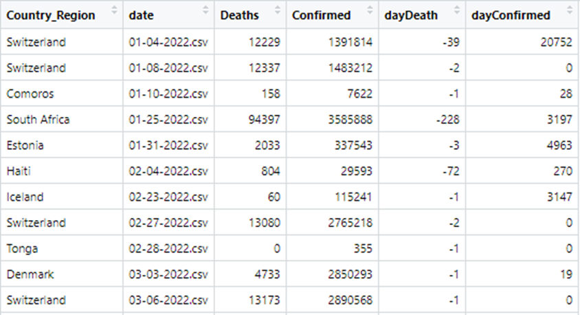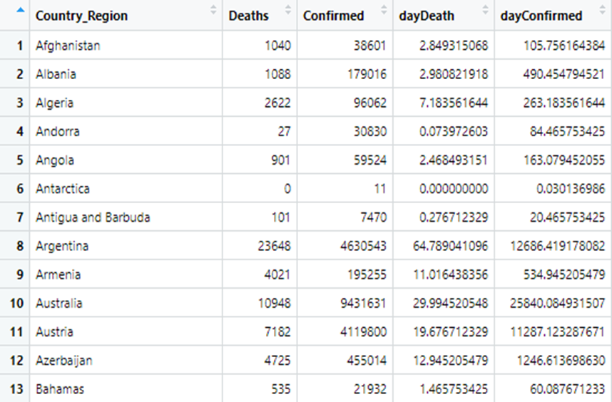 names(each) <- c("Country_Region","Deaths","Confirmed","dayDeath","dayConfirmed")