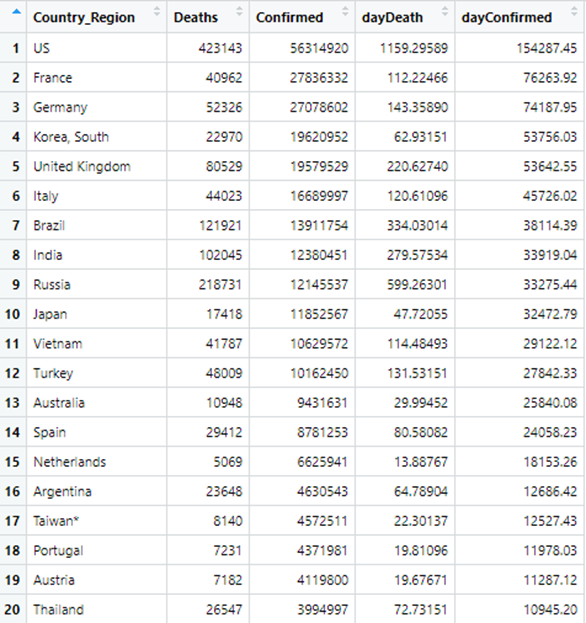 names(setcovid21) <- c("Country_Region","Deaths","Confirmed")