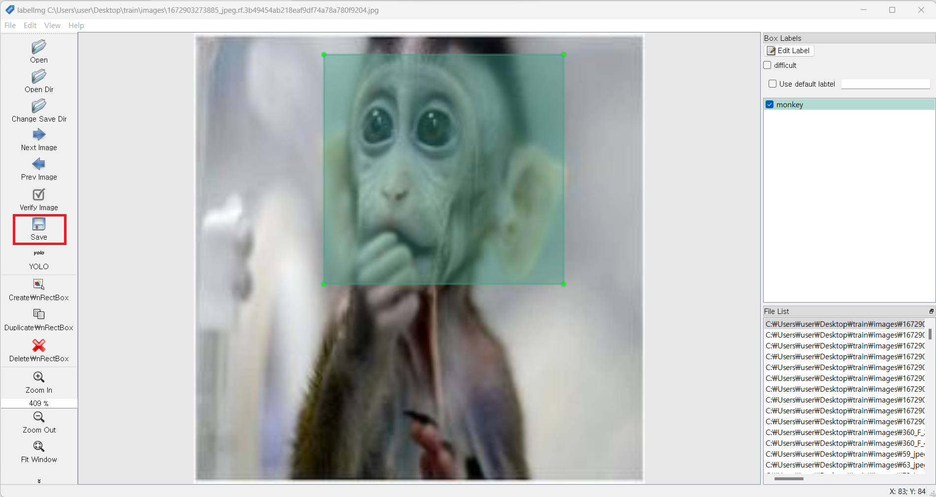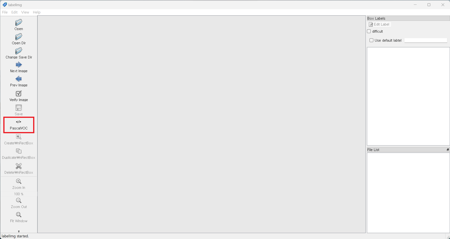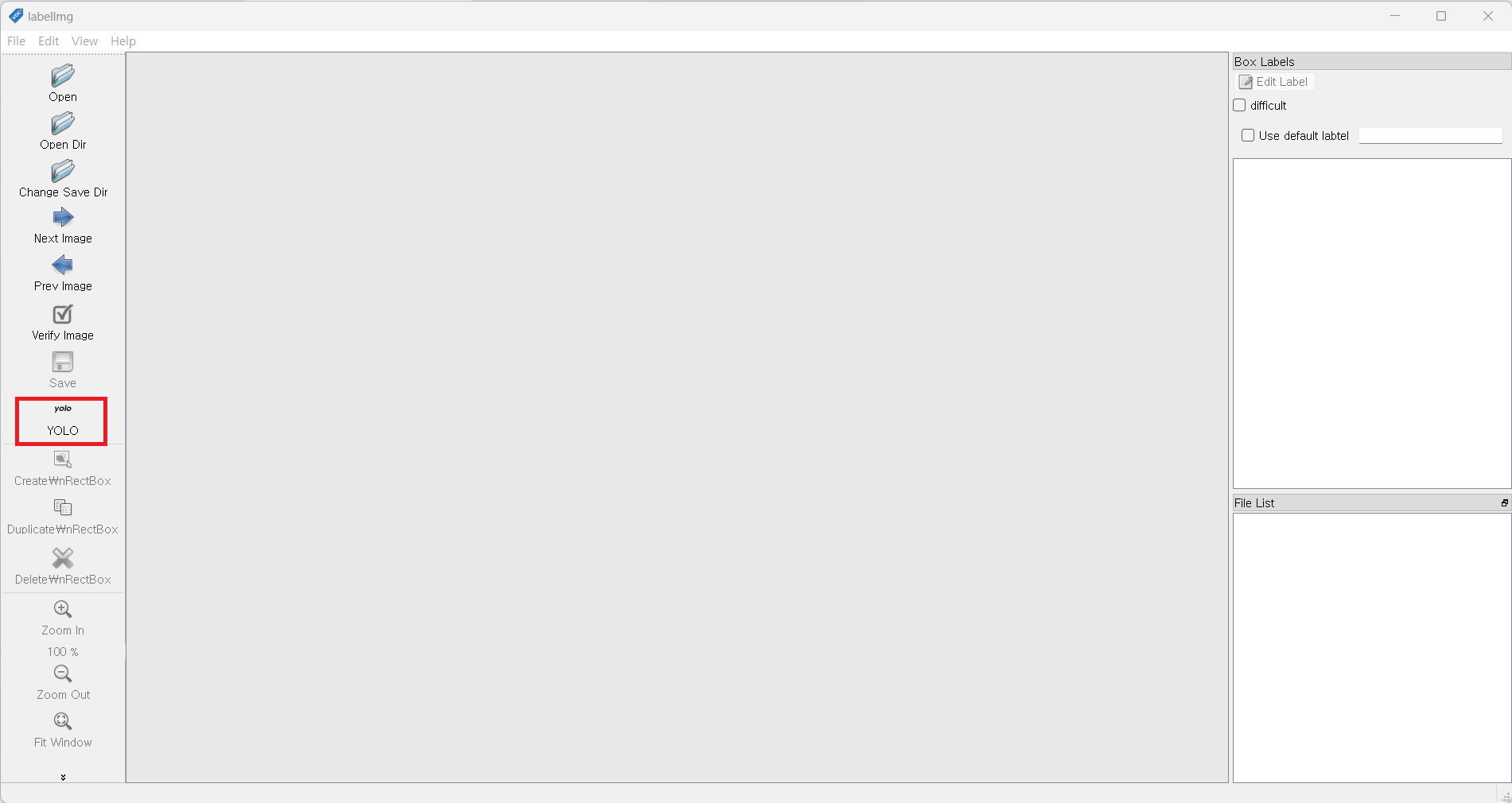 - Change Save Dir 버튼을 클릭해 라벨링 된 txt파일 저장할 폴더를 지정해준다.