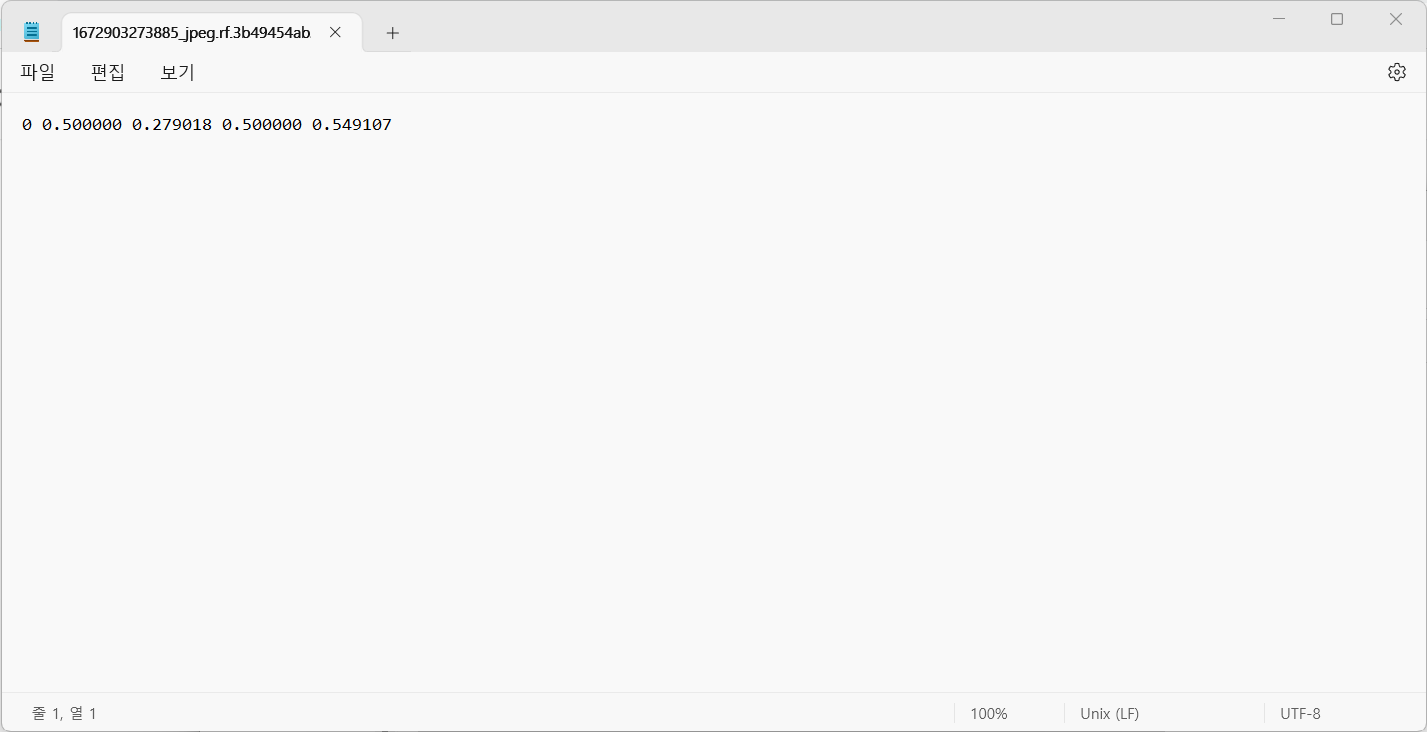 - 라벨링이 완료된 후 생성된 txt 파일이다.